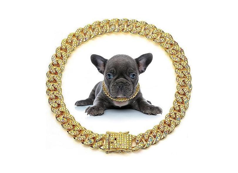 LEIFIDE Coleira de corrente para cães, elos de diamante, coleira para cães de 12 mm de largura, corrente de metal para gatos, coleira de cristal, acessórios de joias para cães pequenos, médios e
