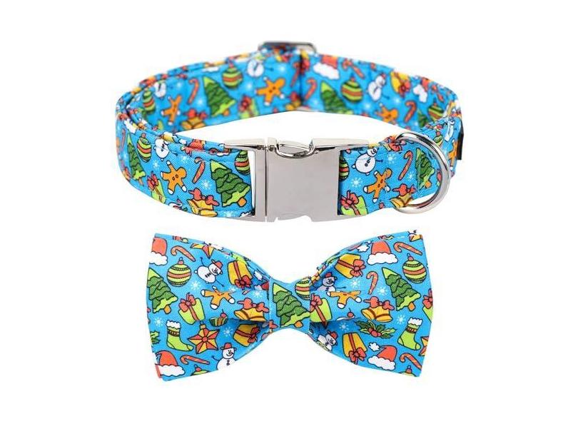 Maca Bates Coleira de Natal para cães de algodão macio para árvore de Natal com fivela de metal, gravata borboleta ajustável para cães pequenos, médios e grandes