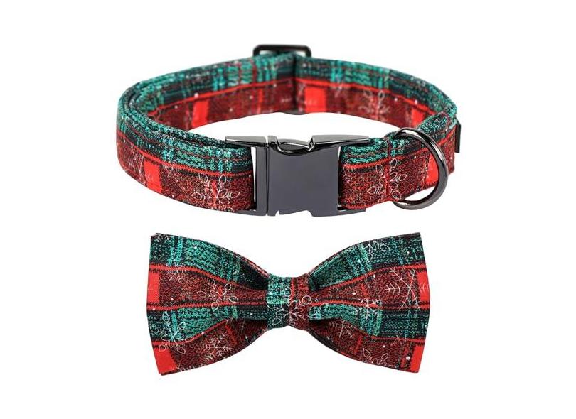 Maca Bates Coleira de Natal para cães xadrez de algodão macio com fivela de metal gravata borboleta ajustável para cães pequenos, médios e grandes