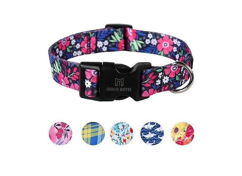 Maca Bates Coleira floral ajustável para cães pequenos, médios e grandes, com padrões, coleiras para meninas, macias e confortáveis