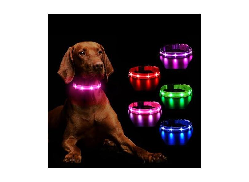 MASBRILL Coleiras para cães iluminadas - Coleira de LED RGB recarregável para cães iluminada resistente à água que brilha à noite coleira para cães pequenos, médios e grandes