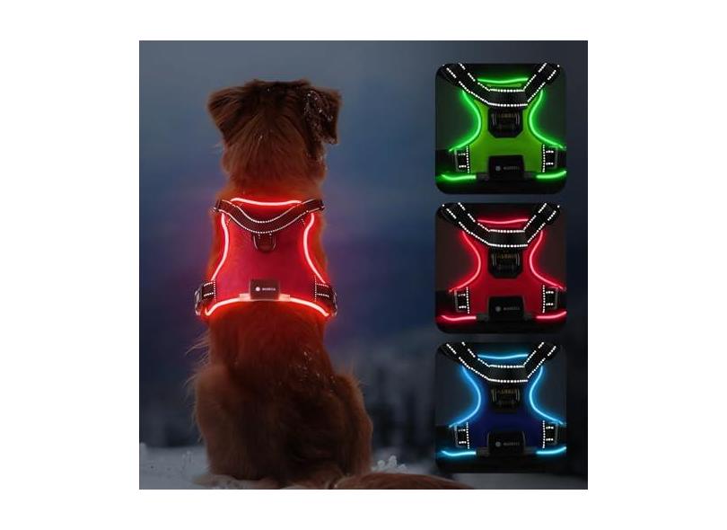 MASBRILL Peitoral para cães de LED – Arnês para cães com luz sem puxão, recarregável, refletivo, iluminado, colete ajustável com brilho para cães pequenos, médios e grandes