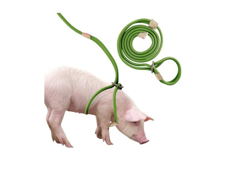Mini arnês e coleira de porco, corda longa ajustável de 2,8 m para porcos de estimação pequenos a médios
