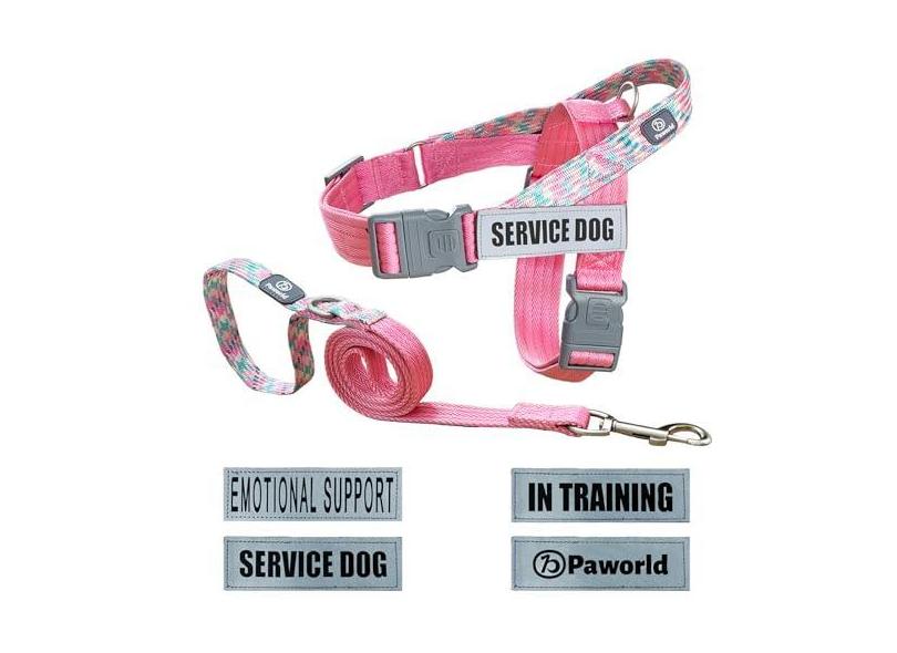 Paworld Conjunto de arnês e coleira para cães de serviço, colete para cães de serviço sem puxão, com 4 adesivos refletivos, arnês para cães com alça, peitoral para cães pequenos, médios e grandes em
