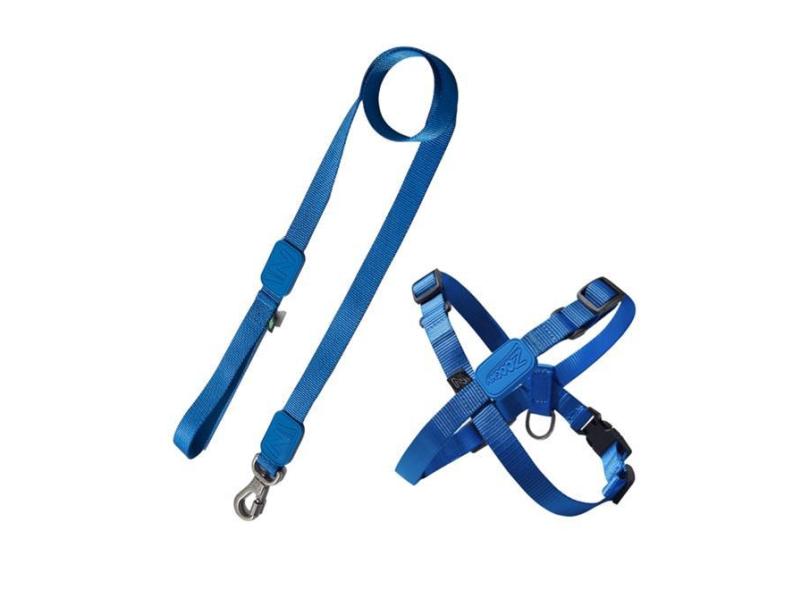 Peitoral Ajustável em X e Guia para Cães Azul Marinho - P