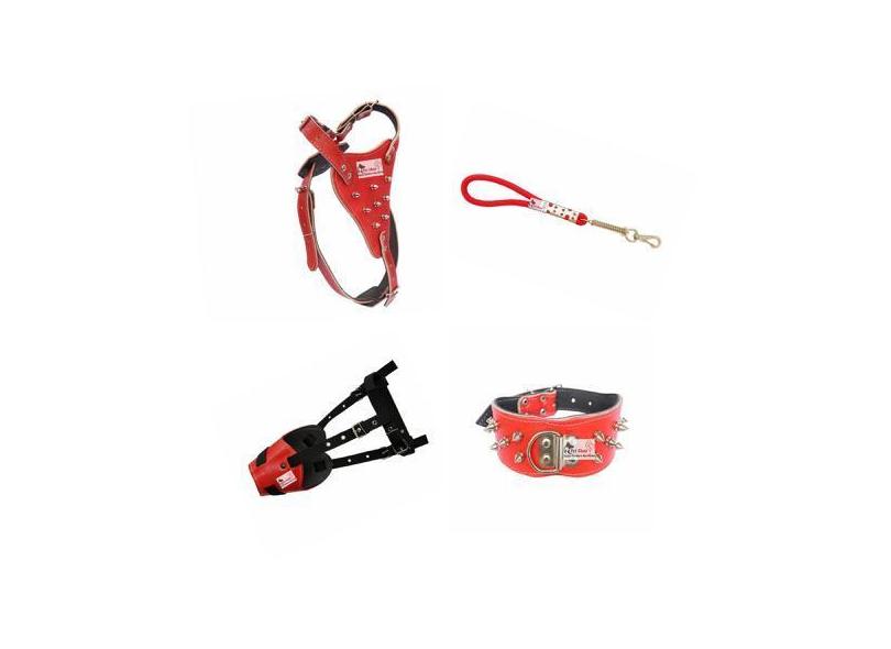 Peitoral Pitbull Couro + Guia + Focinheira + Coleira Spike - Pet Shop