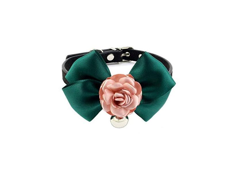 PETFAVORITES âÂ"¢ Coleira de couro napa para cachorro colar de gato fofo joia com gravata borboleta de flor e pingente de sino para cães pequenos menina Yorkie Chihuahua acessórios de roupas de