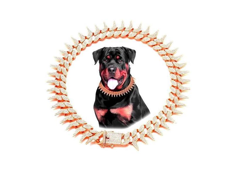 Pimaodog Coleira de corrente de cachorro, colar estilo cravado lateral brilhante diamante cubano, coleira de cachorro com strass e glitter para cães de estimação pequenos, médios e grandes (ouro rosa,