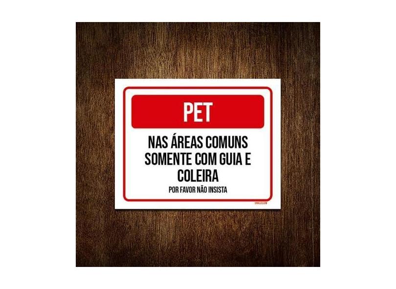 Placa Sinalização - Pet Áreas Comuns Guia Coleira 27x35