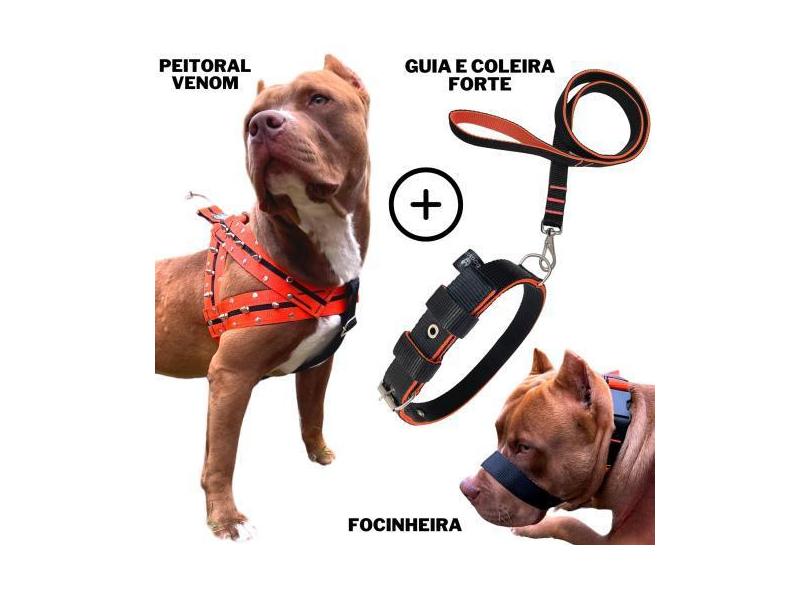 Super Kit Coleira Peitoral Guia Pitbull Com Focinheira - Dogvix