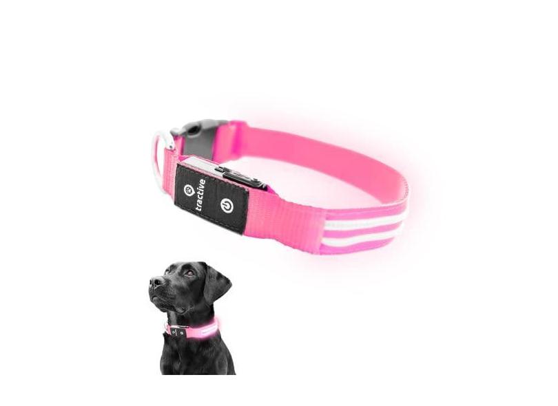 Tractive Coleira para cachorro com iluminação LED recarregável por USB, à prova d'água (rosa)