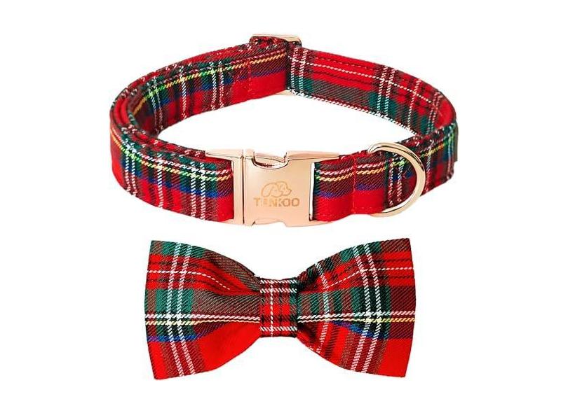 Tunkoo Coleira de Natal para cães com gravata borboleta - coleira xadrez de algodão vermelho super fofa, ajustável, disponível em pequeno, médio, grande para meninas, meninos, cães, P