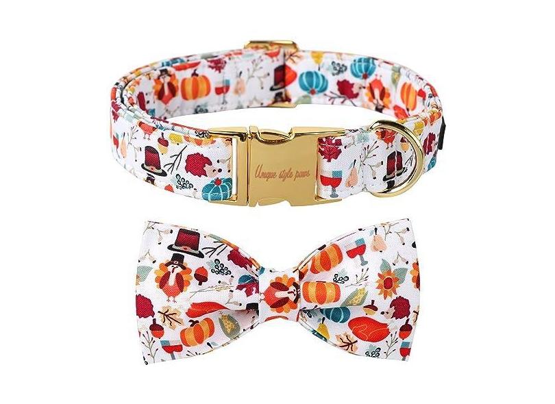 Unique Style Paws Coleira de cachorro de algodão com laço Halloween abóbora xadrez coleira de cachorro com gravata borboleta para cães pequenos, médios e grandes, presentes de animais de estimação