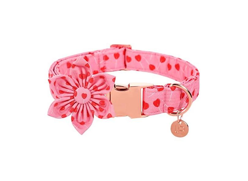 UP URARA PUP Coleira de cachorro para dia dos namorados com flor, coleira de flor para dia dos namorados e , coleira de algodão rosa com fivela de metal, M, pescoço 34,3 a 55,8 cm