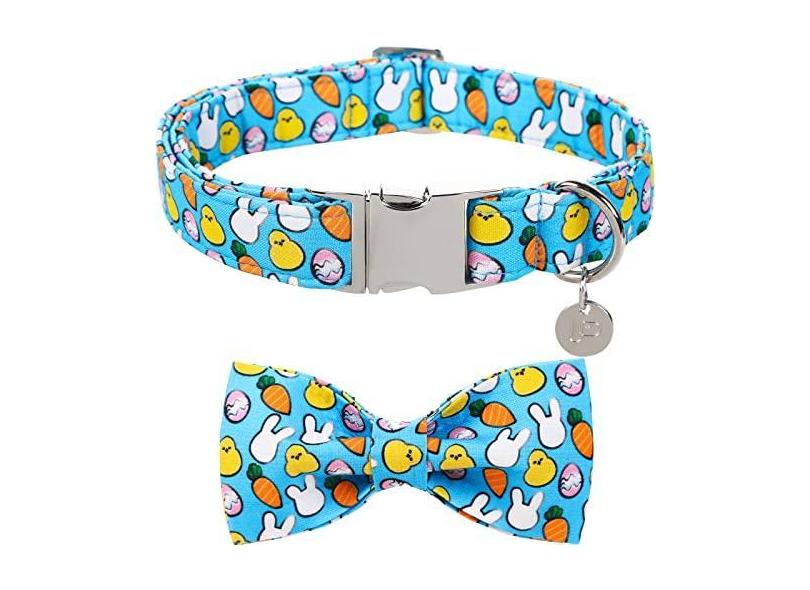 UP URARA PUP Coleira de Páscoa para cães com gravata borboleta, coleira de algodão para meninas e cães médios, coleira fofa de cenoura, coelho e ovo com fivela de metal, presente de dia de Páscoa, M, pescoço 34,3-55,8 cm