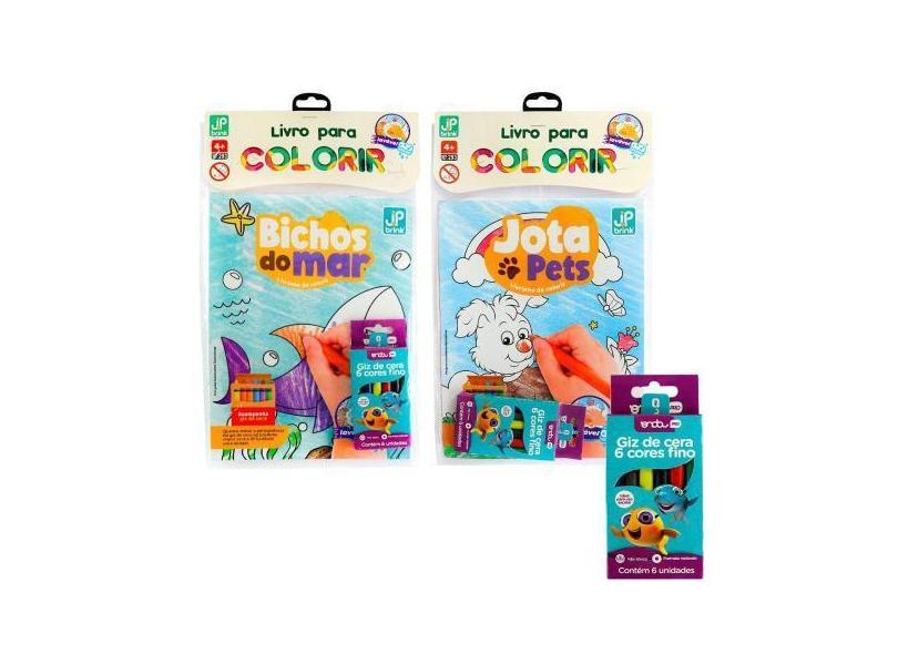 Livro Colorir Infantil Caixa Giz Cera 6 Unidades - Sortido - Jp Brink