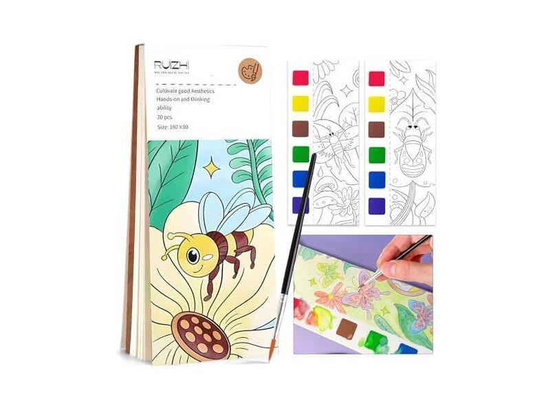 Livro de pintura em aquarela de bolso para crianças e adultos, mini livros de colorir em aquarela, faça você mesmo, marcadores de página de pintura em aquarela, atividades de viagem, lembrancinhas de