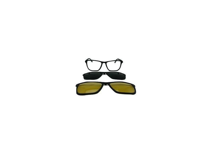 Armação Oculos Grau Rhar5511 01 Preto Com 2 Clip On Polarizado