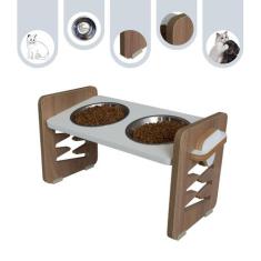 Comedouro Cães E Gatos Elevado Duplo Pet Mdf Zig Zag Regulagem Altura