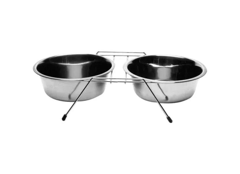 Comedouro e Bebedouro Chalesco para Cachorro e Gato de Aço Inox Duplo com Suporte Tam 3