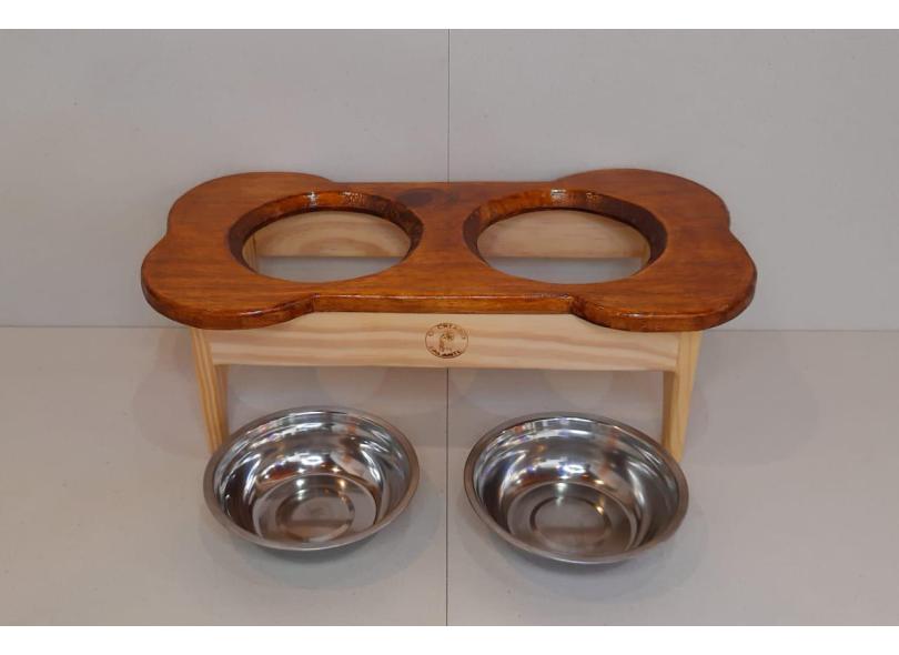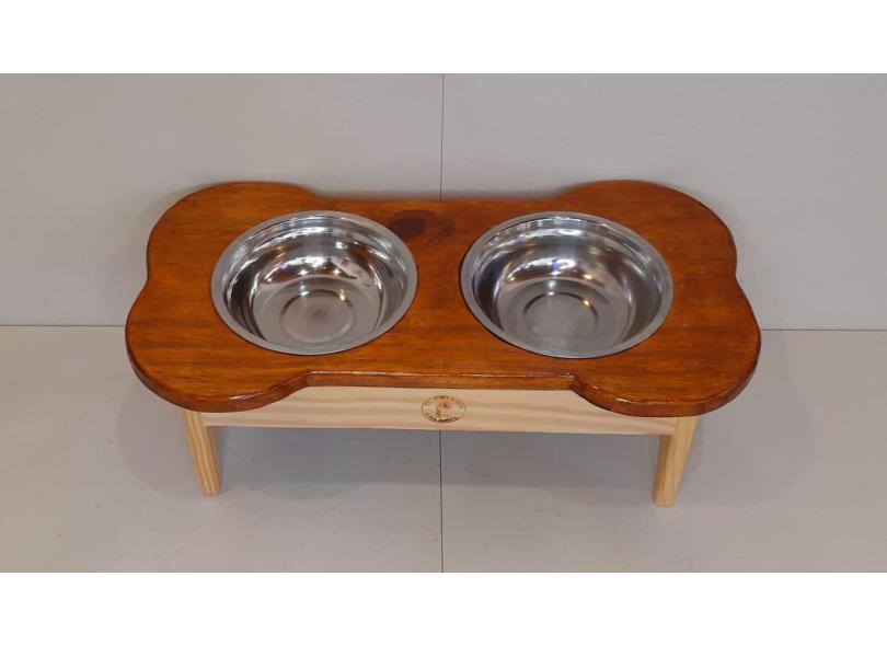 Comedouro Elevado Pet De Madeira Duplo Ossinho Pequeno