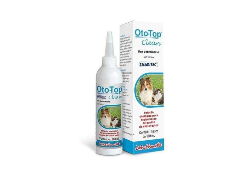 Oto-Top Clean Limpeza Otológica Cães Gatos Chemitec 100ml