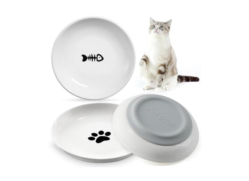pawstrip Tigela de comida de gato de cerâmica rasa para gatos com bigode para fadiga, pratos planos para alimentos úmidos, tigela larga para alimentação de animais de estimação para gatos e cães,