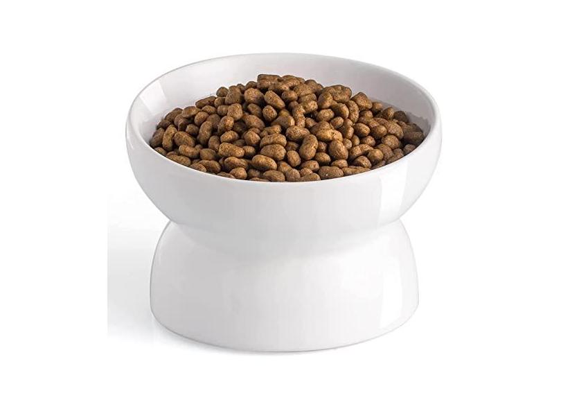 Tempaky Tigela elevada para gatos, tigela elevada inclinável para comida de gato de 4,72", tigela branca para animais de estimação para gatos, cães pequenos, anti-vômito protege a coluna vertebral do