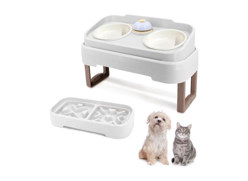 Tigela de água elevada para comida de cachorro - Tigelas elevadas para cães e gatos com suporte antiderrapante - Conjunto de tigela dupla para alimentação de cães e gatos com proteção à prova de
