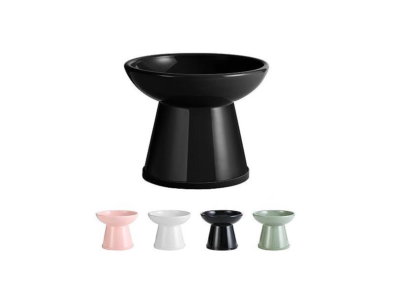 Tigela elevada de cerâmica para comida de gato – Tigela elevada para gatos com tira antiderrapante – Prato de comida de gato raso livre de estresse – Tigelas de alimentação extra largas para gatos