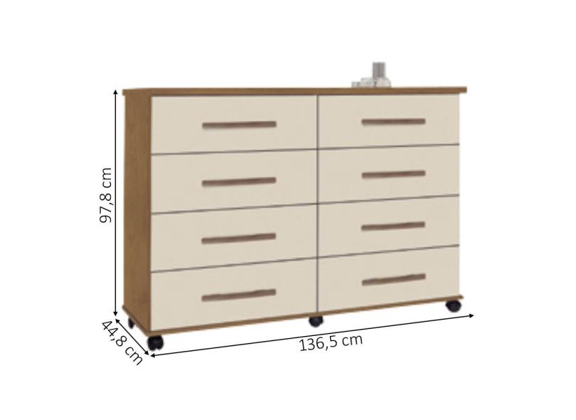 Cômoda 8 Gavetas Jade Móveis Primus Mel/Pérola CestaPlus
