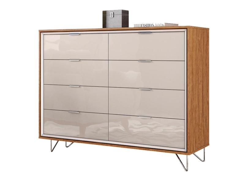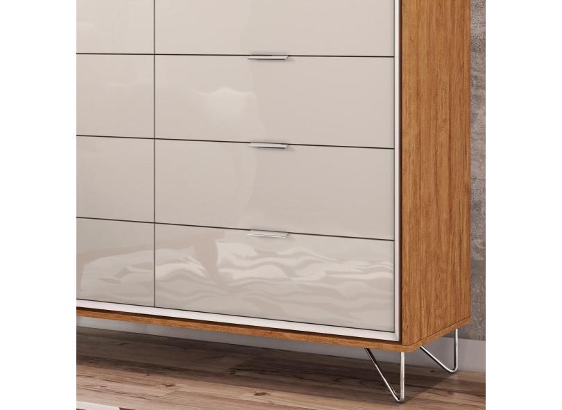 Cômoda 8 Gavetas Pés Aço Premium Amêndoa/Off White - Lukaliam Móveis