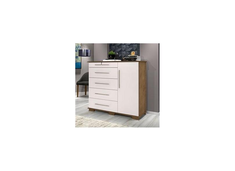 Cômoda Sapateira C/ 1 Porta e 5 Gavetas - J&A Detroit New - Jequitibá/Off White