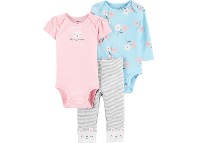 Conjunto Bebê Menina Carters 3 Peças com Calça - Floral Ursinha