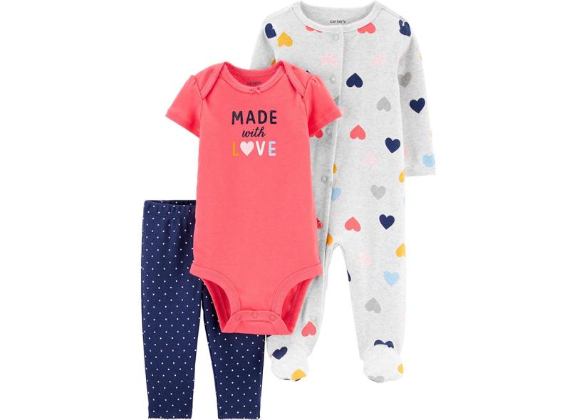 Conjunto Bebê Menina Carters Love 3 Peças – Macacão, Body e Calça com Pezinho