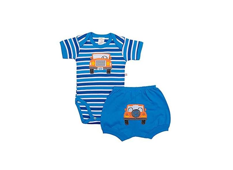 Conjunto body e shorts Best Club Baby com bordado carro