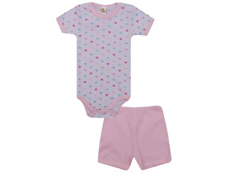 Conjunto de Bebê Body Manga Curta e Short Liso Corações