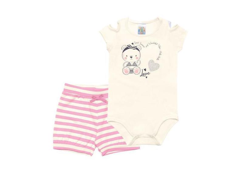 Conjunto Manga Curta Natural - Bebê Menina Cotton 44106-68 - Pulla Bul