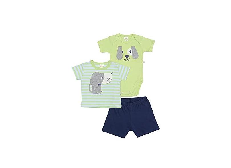 Kit 3 peças body, camiseta e bermuda Best Club Baby verde e azul marinho com bordado cachorro