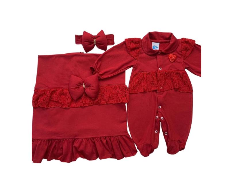 Saída Maternidade Menina Vermelha em Malha de algodão