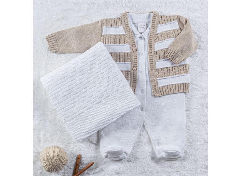 Saída Maternidade Menino Bege Tricot 03 Pçs Grão De Gente