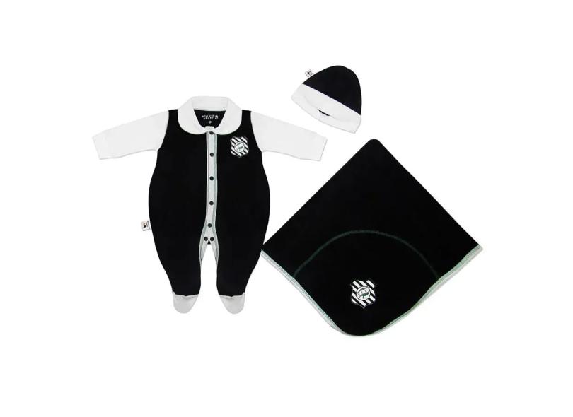 Saída Maternidade Revedor Figueirense Manta Plush Unissex Branco E Preto