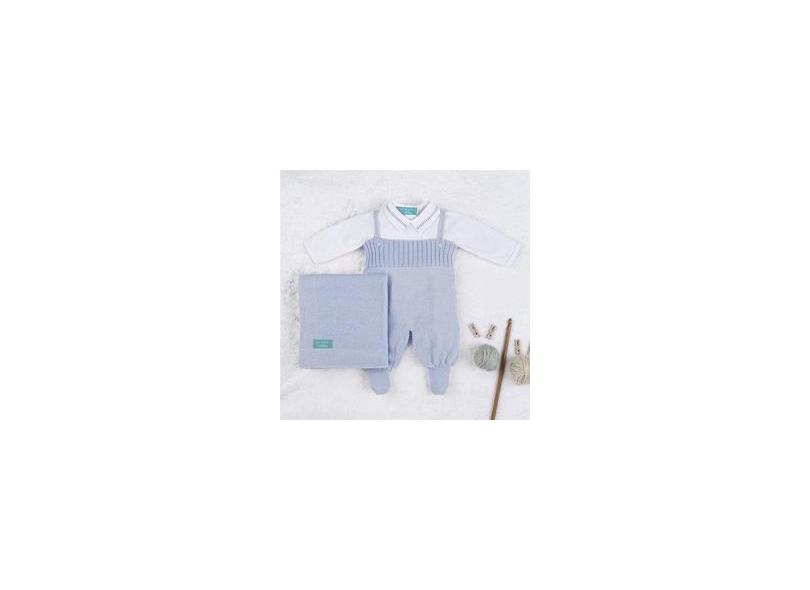 Saída Maternidade Tricô Gola Americana Azul Grão de Gente