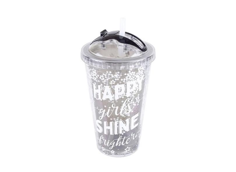 Copo com Canudo Brilhante 450ML Happy Girls Shine Brighter - Etilux