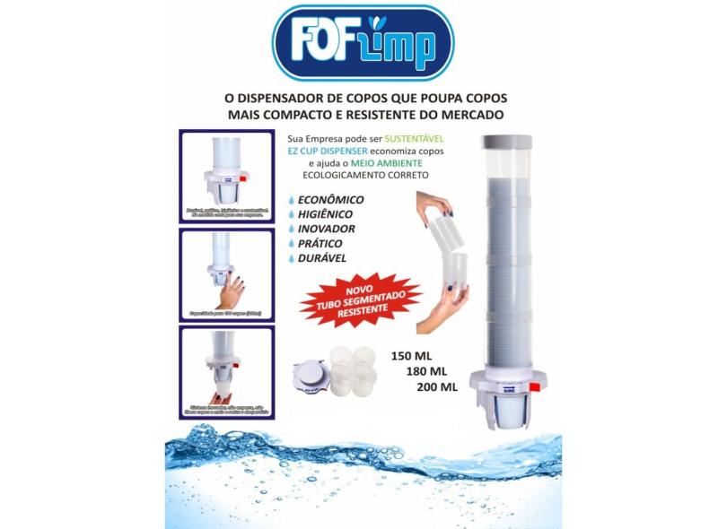 DISPENSADOR PORTA COPOS EZ-CUP C/ ALAVANCA PARA COPO ÁGUA ATÉ 200ml E COPO CAFÉ ATÉ 80ml