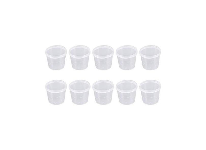 ifundom Copos de plástico com tampas, conjunto de 50 pequenos recipientes de plástico com tampas, copos de jato de gelatina com tampas, copos descartáveis, recipientes para condimentos com tampas, copos para molho e molho