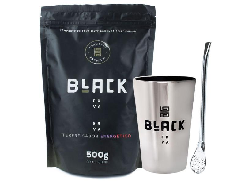 Kit Tereré Erva Energético Copo Cromado E Bomba Black Erva