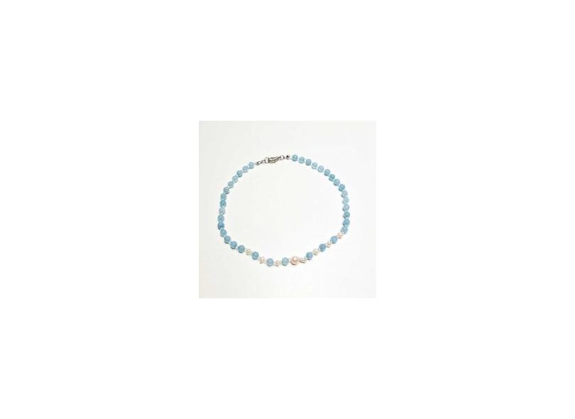 Choker Sereia Cristalina Água Marinha E Pérola De Água Doce