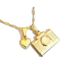 Colar Câmera Fotográfica Chapa Coração Folheado 18k