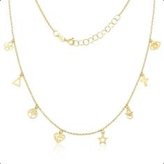 Colar Choker 43Cm Elo Português Ouro 18K Com Berloques